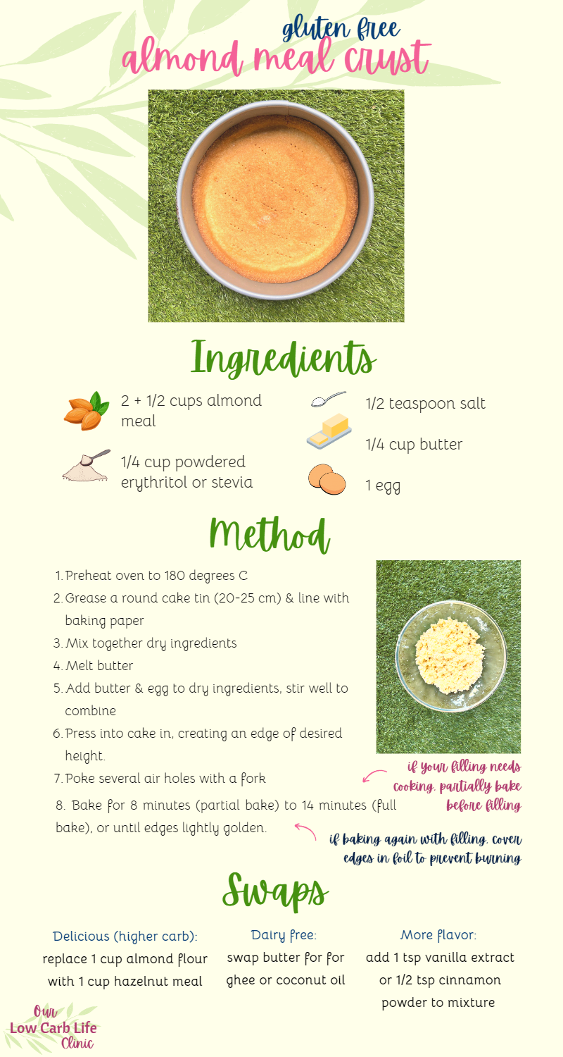 The main ingredient in this crust is almond meal or almond flour (you choose).