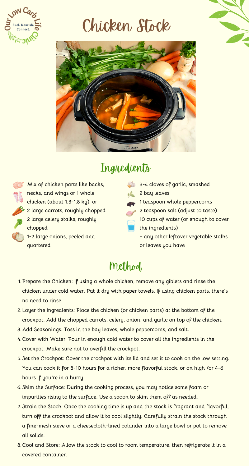 Protein: Chicken stock is a source of high-quality protein, which is vital for the growth and repair of tissues in the body.