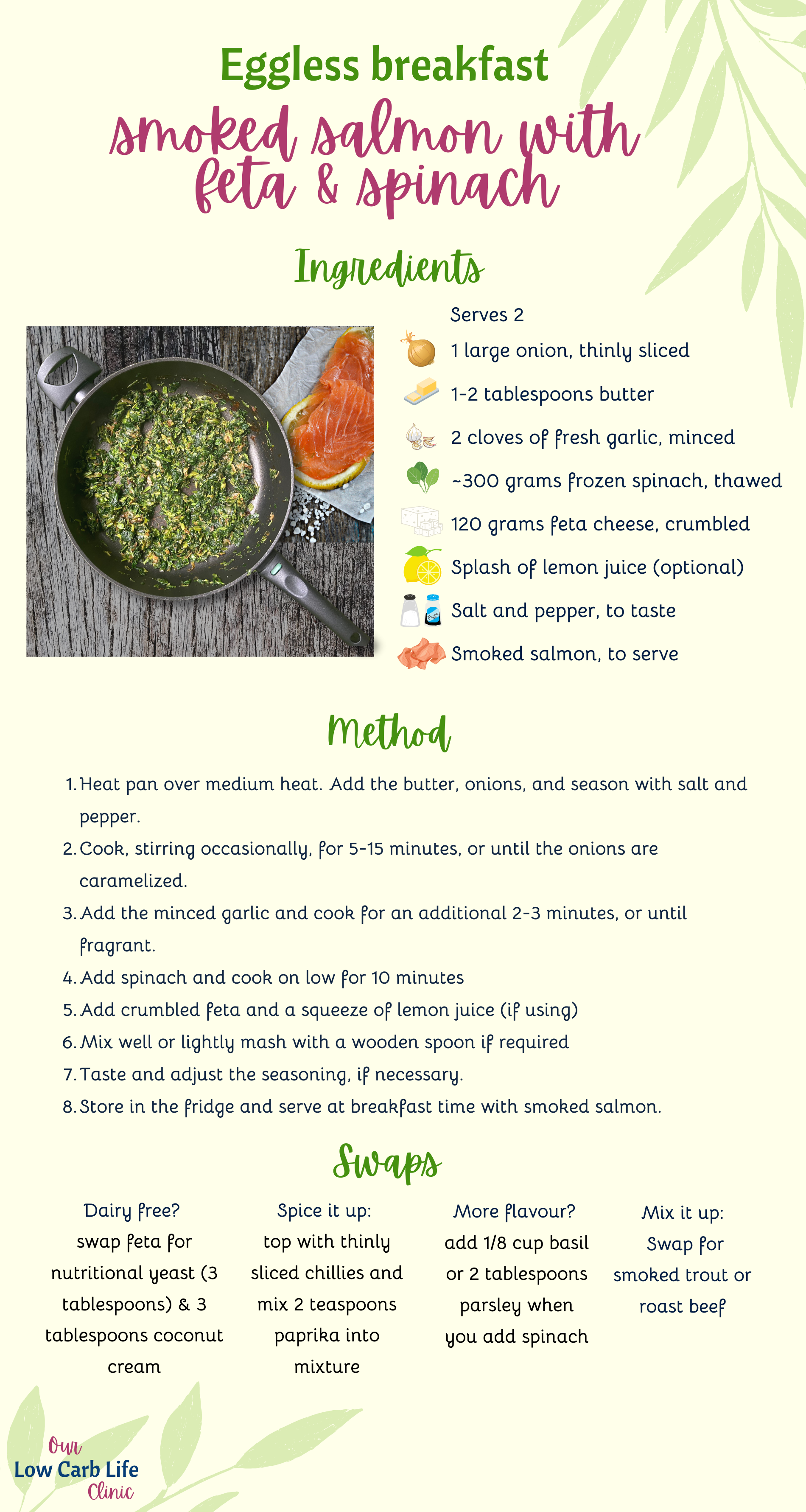 Not only is this breakfast delicious and easy to make, but it's also a great source of protein. The spinach and feta dip provides about 10.5 grams of protein per 100 grams, and the smoked salmon provides about 20 grams of protein per 100 grams. This makes for a protein-packed breakfast that will keep you feeling full and satisfied throughout the morning - you won't miss snacking when you're protein fuelled & low carb.