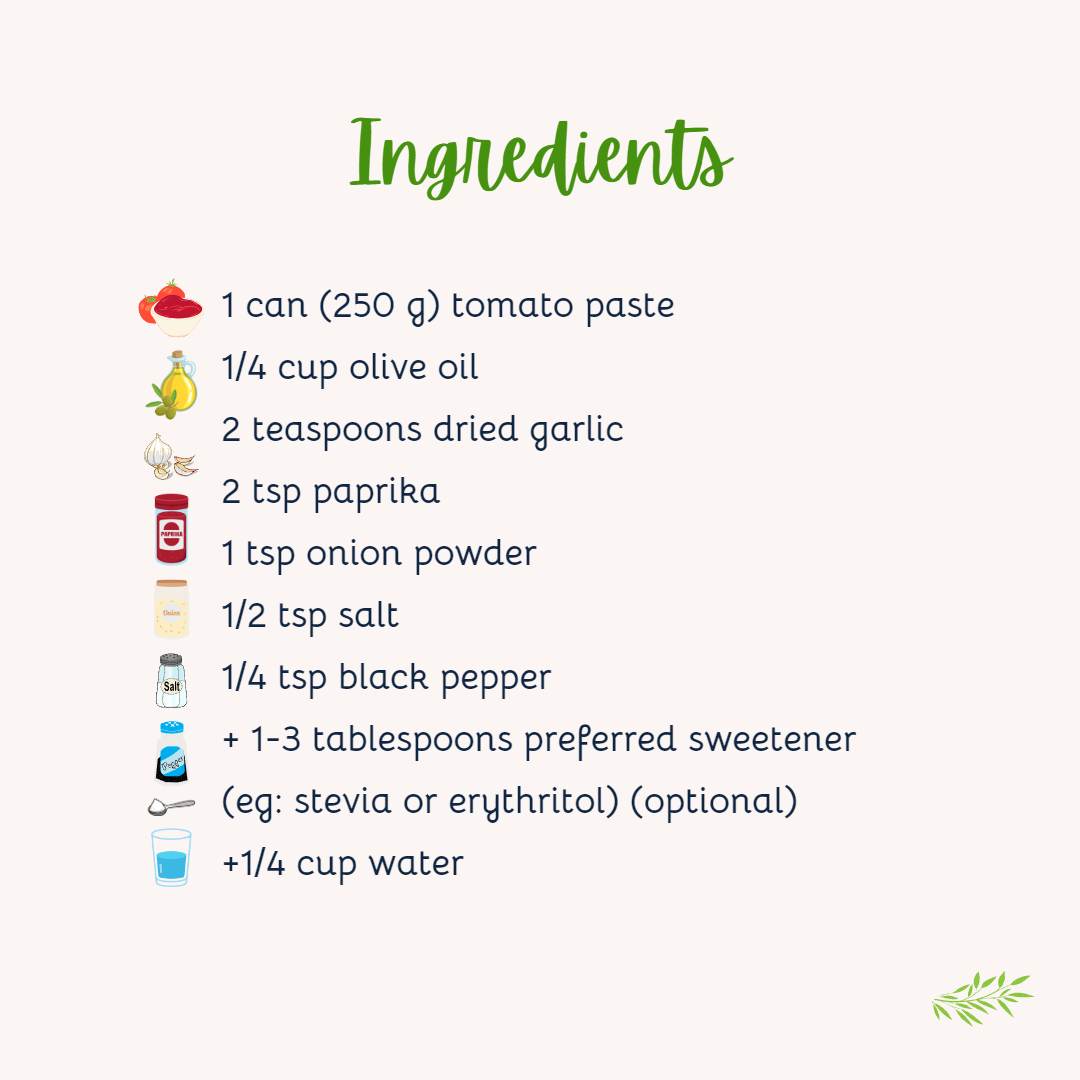 This recipe for sugar-free tomato sauce is made with tomato paste, olive oil, and paprika. These simple ingredients come together to create a flavorful and versatile sauce that can be used in a variety of dishes. The tomato paste provides the base for the sauce, while the olive oil adds richness and depth of flavor. Paprika adds a subtle smoky flavor and a touch of heat.